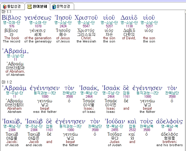 여기서 각 원어 단어에 붙은 번호가 바로 스트롱 코드입니다.