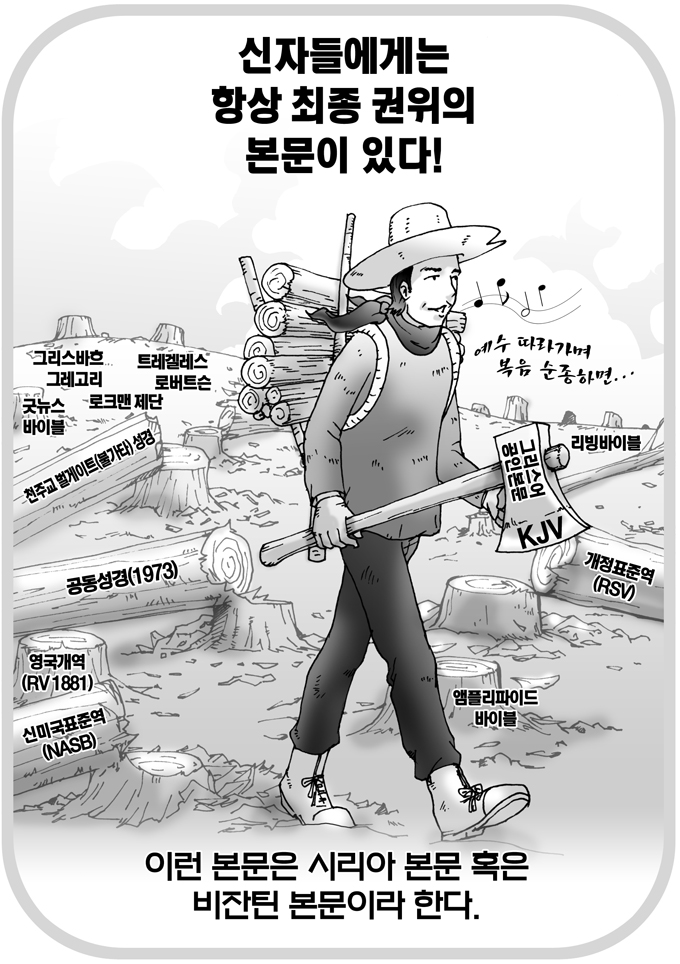 그리고 한 가지 더 알려드려야 할 것이 있습니다. 소수 사본 지지자들이 추앙하는 바티칸 사본과 시내 사본은 자기들끼리 일치하지 않는 부분이 수두룩합니다. 이것은 이미 사본 학계에 공공연하게 다 알려진 사실입니다. 이러니 누가 어떤 것을 신뢰할 수 있을까요?