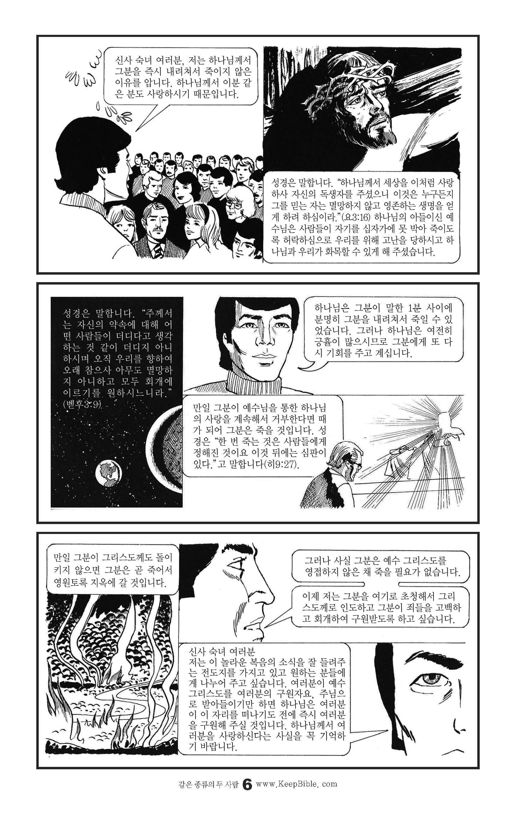 성경교리 성경공부성경교리 모든 성경 기록은 하나님의 영감에 의해 주어진 것으로 교리와 책망과 바로잡음과 의로 교육하기에 유익하니 (디모데후서 3장 16절) 같은 종류의 두 사람(만화 전도지)조회수 : 53262 작성자 : 관리자 작성일 : 2011년 10월 7일 15시 13분 8초 '진화론에 세뇌당한 것은 아닙니까?"에 이어 '같은 종류의 두 사람'이라는 제목의 만화 전도지를 올립니다. 패드 등에 넣어서 보고 알려주어도 좋을 것입니다. 작업을 해 주신 한기만 형제님과 신실한 한 형제님에게 다시 한 번 감사를 드립니다. TwoKind-01.jpg TwoKind-02.jpg TwoKind-03.jpg TwoKind-04.jpg TwoKind-05.jpg TwoKind-06.jpg TwoKind-07.jpg TwoKind-08.jpg TwoKind-09.jpg TwoKind-10.jpg TwoKind-11.jpg TwoKind-12.jpg 같은종류의두사람.pdf 이전 다음 목록 정말 삭제하시겠습니까? 삭제하기 취소 수정하시려면 비밀번호를 입력하여 주세요. 확인 취소